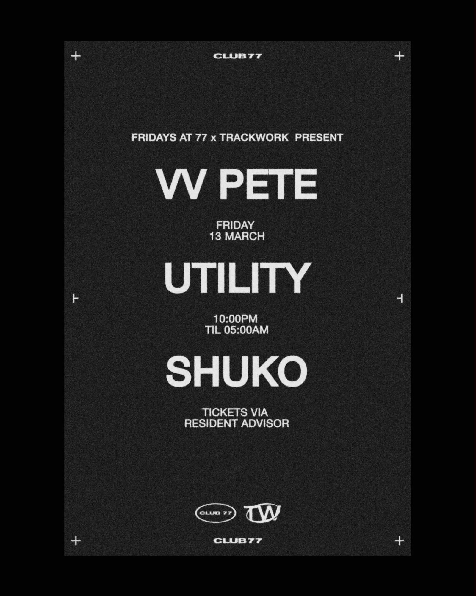 Fridays at 77 x Trackwork: Vv Pete, UTILITY, Shuko
